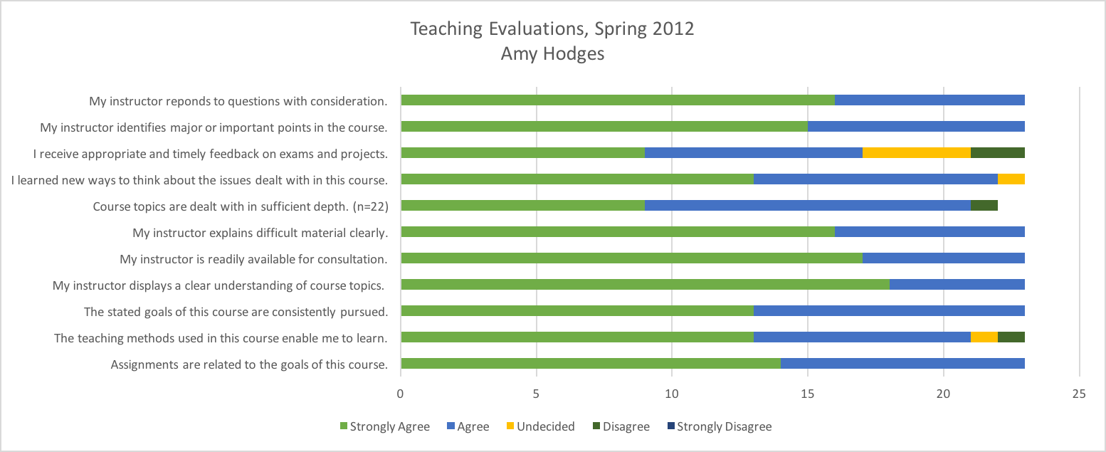 Here are the teacher evaluations and feedback I received for the Twilight Course I taught Spring 2012.